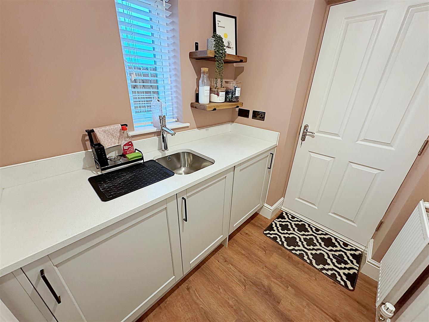 The utility with a u.PVC double glazed window with a hardwood door to the integral garage. Pale grey units with quartz work surfaces incorporating a stainless steel sink unit with a chrome mixer tap and a integrated washing machine. Luxury vinyl tiles to the floor, a central heating radiator and spotlights to the ceiling.WC 1.83m x 0.97m (6ft x 3ft 2in)
