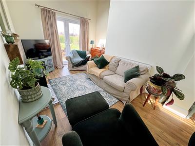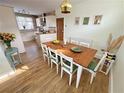 The dining area with a u.PVC double glazed window, a central heating radiator, oak effect laminate to the floor and a light to the ceiling.LIVING AREA 4.09m x 3.33m decreasing to 2.59m (13ft 5in x 10ft 11in)