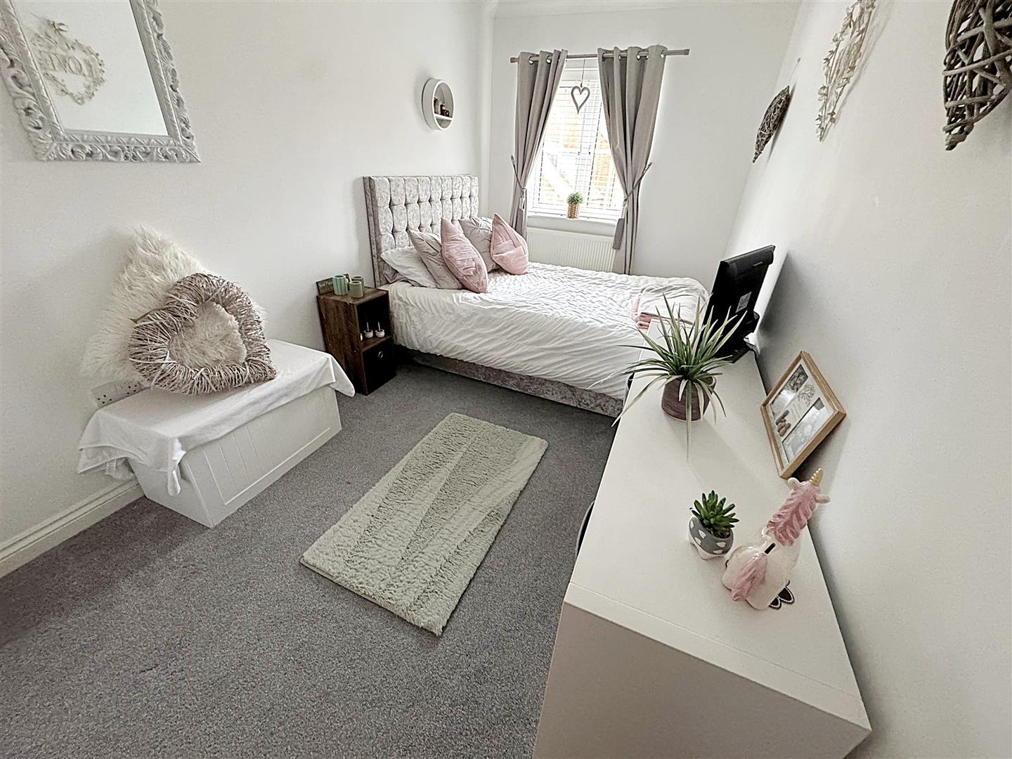 This spacious double bedroom enjoys plenty of natural light thanks to its dual-aspect uPVC double-glazed windows. It features an excellent range of fitted wardrobes, a matching dressing table, and two bedside tables, offering ample storage and style. The room is completed with a central heating radiator, ceiling coving, and a modern light fitting.BEDROOM 2 4.42m x 3.73m (14ft 6in x 12ft 3in)