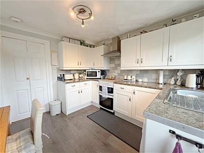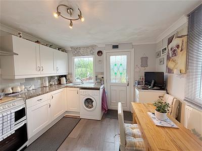 This light and airy room is of a good size, with three uPVC double glazed windows, a decorative fireplace with marble hearth and surround with an electric fire situated to the middle. There is a central heating radiator and a central light fitting and a bi-fold door that takes you through to the kitchen.