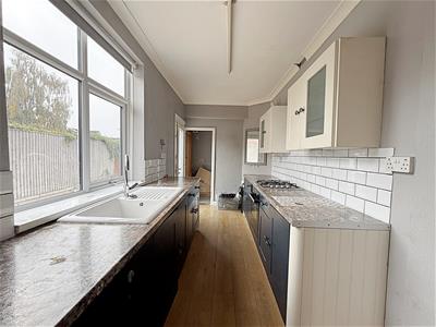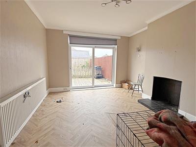 The dining room is situated to the rear of the property with uPVC double glazed large patio doors to the rear, a tiled open fire place, skirting board, cornicing to the ceiling with a central light fitting, a central heating radiator and wood effect lino to the floor.