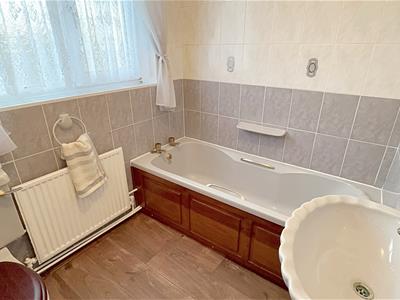 The bathroom with a grey coloured suite comprising of a paneled bath, a pedestal wash hand basin and a WC all with Brass effect fittings. A u.PVC double glazed window, fully tiled walls, wood effect laminate to the floor, a central heating radiator, loft access and a light to the ceiling.BEDROOM 1 3.81m into bay x 3.33m (12ft 6in x 10ft 11in)