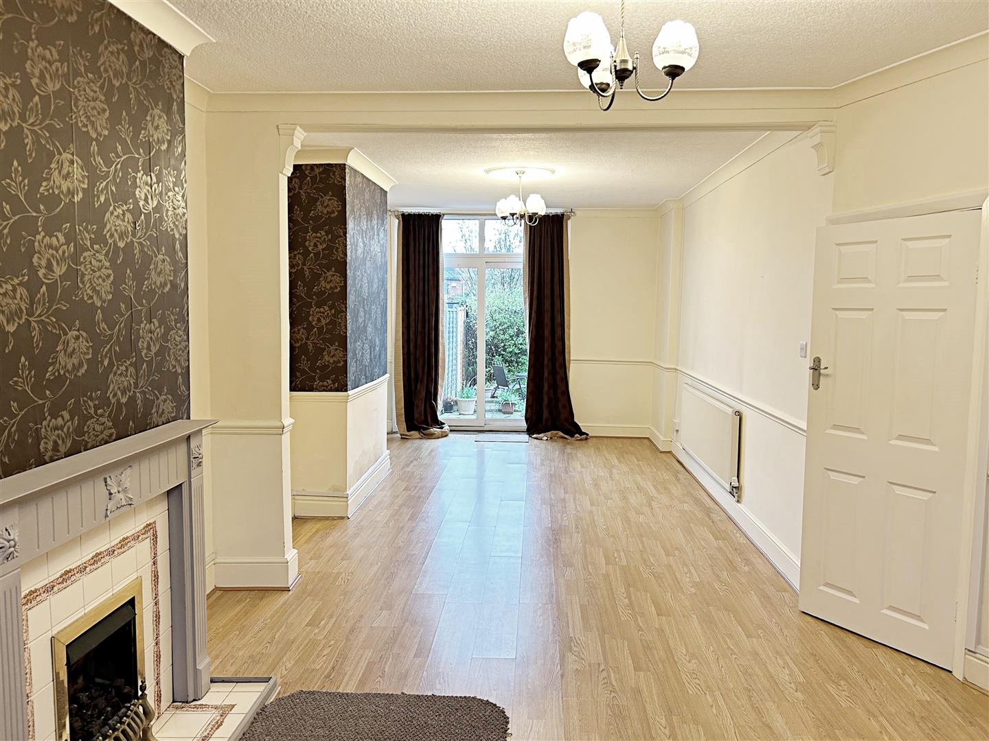 The lounge area with a u.PVC double glazed walk-in bay window to the front, a central heating radiator, a wooden fire surround with a tiled back and hearth, a light and coving to the ceiling.DINING AREA